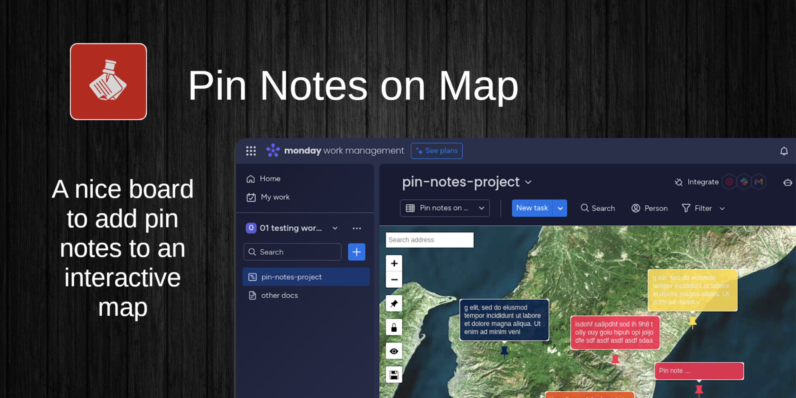 Introducing our app that allows you to type your short notes and pin them on a map. This app is suitable for professionals that want a visual way to see and show their notes in an interactive map.